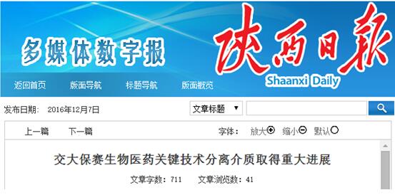本報訊(記者 雷魏添 通訊員 安芷儀)12月5日,記者從西安交大保賽生物技術股份有限公司獲悉,由國家發改委委托省發改委組織專業評審組對西安交大保賽生物技術股份有限公司承擔的國家戰略新興產業發展專項“生物藥及疫苗用分離介質的自動化控制工業生產項目”順利通過驗收,標志著我國生物醫藥關鍵技術分離介質取得重大進展。