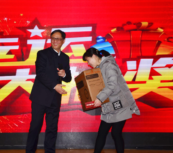 2017年1月23日,中國保賽集團一年一度的迎春年會在西安市國力仁和舉行。“新故相推,日生不滯”,迎新,是對過往的總結道別,是對來年的迎納吉祥。 隨著主持人的一席開幕詞“伴隨著冬日里溫暖的陽光,我們保賽集團全體同仁歡聚在這里,告別2016年,共同迎來充滿希望的2017年”,拉開了保賽集團迎春年會的帷幕。  首先,郭立安董事長為年會致新年賀辭。郭董說,在這新春來臨之際,我代表保賽集團的管理層及股東,向全體員工及家人表示新春的祝賀!回顧2016年,對國內多數企業來講是艱難的一年,我們集團各公司也未能完全避免國內經濟形勢的影響。在這種情況下,集團員工全力合作,克服種種困難,完成了集團年初制定的主要任務,取得了可喜可賀的成績!涌現出來一批踏實工作、任勞任怨、出色完成自己本職工作的優秀員工。我們要為他們點贊和喝彩!我們更要清楚地記住企業的本質及主要任務是產生利潤。2017年全國的經濟形勢會更加不好,對多數企業的困難對部分企業來講就是機會,我們要全力以赴地克服困難,學會在困難中尋找機會,發展自己、壯大自己!完成各公司制定的工作計劃!大鍋飯不可能再有,相信在大家的共同努力下,會實現再生!讓我們明年在同一時刻見證重生的奇跡!這是我10年來第一次感到時間如此短暫,許多事情還沒來得及做,新年就來了。這也說明了我們開始走向了涅槃結束、一七重生的新征程!相信我們的目標一定會實現,也一定能實現!  中國保賽集團郭立安董事長致辭   保賽集團2017年度迎春年會現場 集團公司總結表彰了在2016年度做出突出貢獻與表現優異的領導與員工,并舉行頒獎典禮。 郭立安董事長為2016年度集團突出貢獻獎的獲得者王李安頒獎  張靜張總為西安保賽恒成生物工程有限公司優秀員工孫洋、邢強頒獎  李加林李總為陜西新世紀科技發展有限公司優秀員工陳海英、王麥花頒獎 羅健羅總為西安交大保賽生物技術股份有限公司優秀員工郭娜頒獎 每年迎春年會抽獎都是最high的環節,隨著抽獎嘉賓三等獎、二等獎、一等獎、特等獎的抽取,歡呼聲、掌聲嗨翻全場。 集團董事長助理王李安為三等獎獲得者發獎 集團財務總監羅健為二等獎獲得者發獎 陜西新世紀科技發展有限公司總經理李加林為一等獎獲得者發獎  集團郭立安董事長抽取特等獎 集團郭立安董事長特等獎為特等獎獲得者郝亞文發獎 在郭董的祝酒詞后,宴會席間,大家舉杯暢飲,即興共舞,其樂融融。這是屬于保賽人的歡樂家庭盛宴!