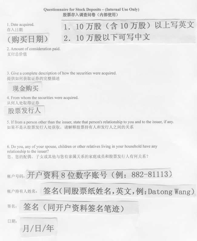 六、公司只負責將股東股票紙存入到股東個人證券賬戶,不負責存入股票紙的真實性。
