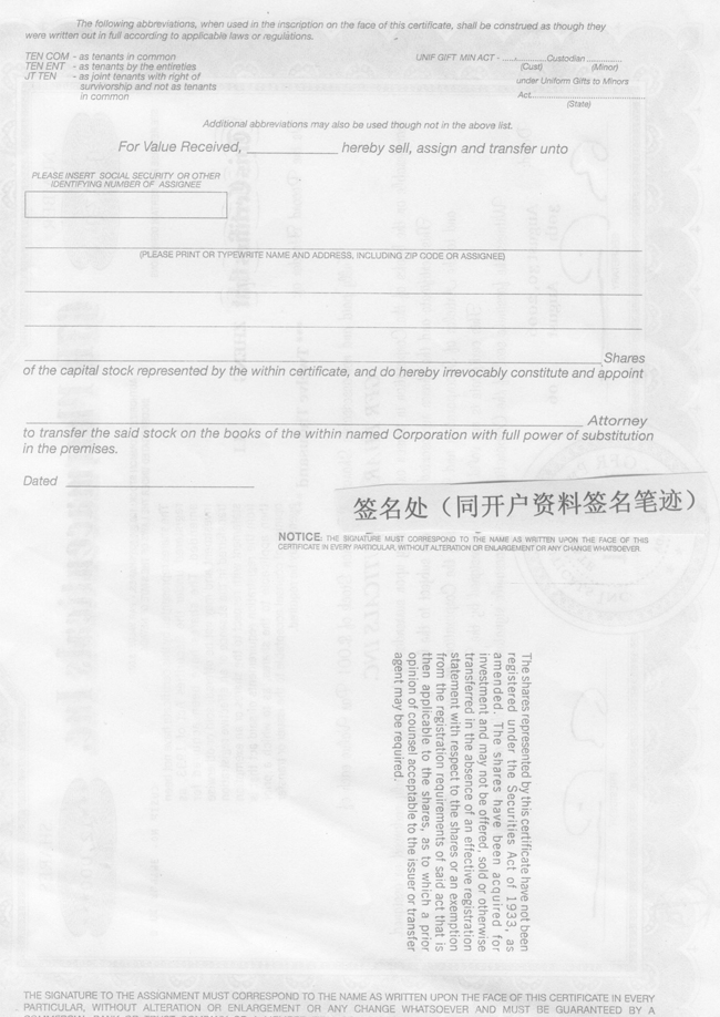為確保股票紙安全寄到,股東必須用郵政快遞的方式郵寄,并保管好相關的郵寄單據,以備查證。切勿以平信或掛號方式郵寄,否則在郵寄過程中發生丟失或延期等責任自負。請隨時和公司聯系,查尋股票紙是否已郵寄到公司。